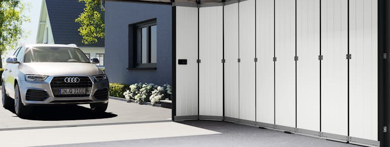 Különleges beépítési szituációkban a Hörmann oldalra futó szekcionált kapuk jelentik az ideális megoldást. Ez a kapukialakítás a billenő-, szekcionált- és redőnykapukkal ellentétben nem felfelé, hanem oldalra nyílik. Ez nagy előnyt jelent, ha például tárolási célra (pl. szörfdeszkák tárolására) szabadon akarják hagyni a garázsmennyezetet, vagy ha a kapulap építészeti okokból (lejtős födém, alacsony szemöldök, útban lévő csatornacsövek) nem helyezhető el, illetve nem szerelhető fel a mennyezet alá.